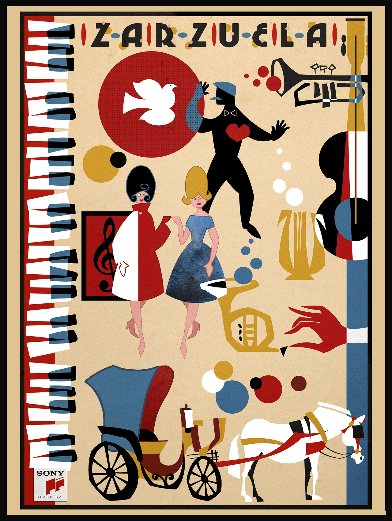 Serie de cinco ilustraciones para el disco-libro "La Zarzuela: Nuestro Musical", una antología de la zarzuela editada por Sony Classical.
