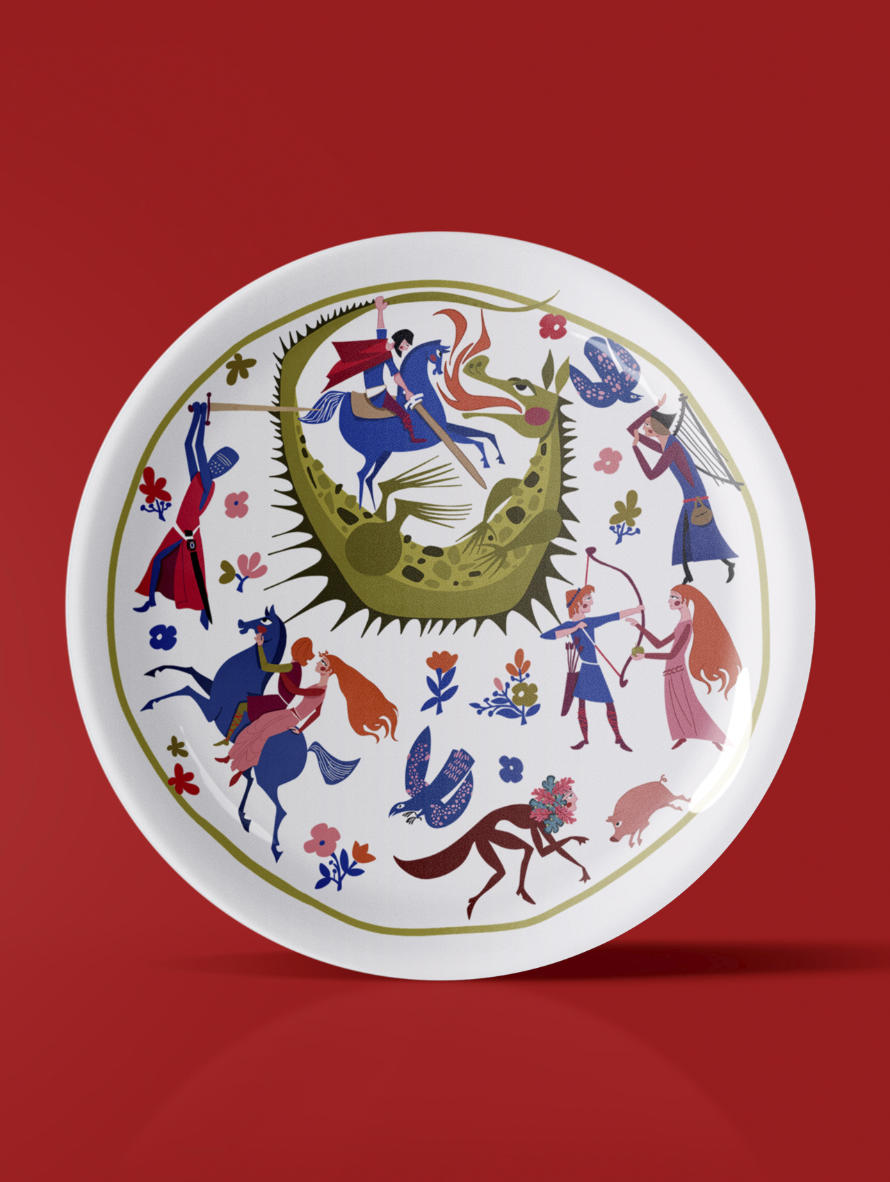 Plato de cerámica blanco estampado.