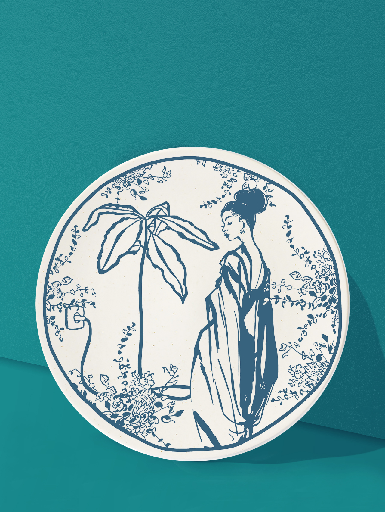 Plato de cerámica blanco estampado.